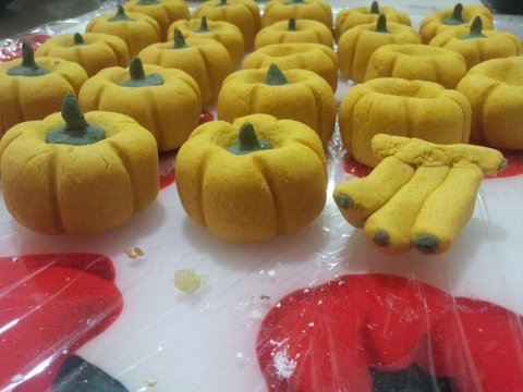 (사진에는 없는데 삶은 단호박 껍질소량을 준비해주세요~ 단호박쿠키 꼭지부분이에요~)