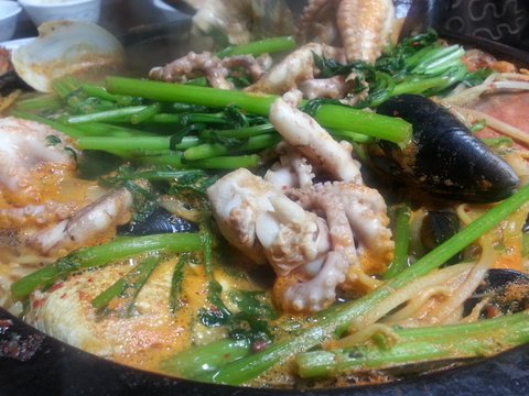 할머니 생신때 게랑 전복 조개등등사서 만든 해물탕~
