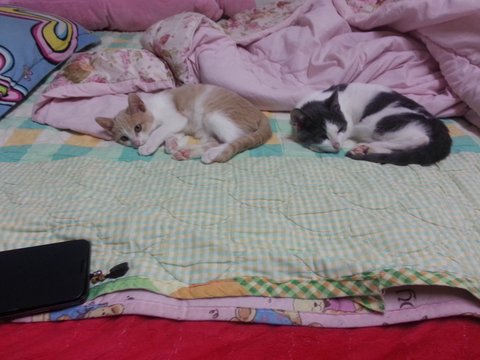 침대에잇는거울을보고입에사료가루가묻었는지보고~