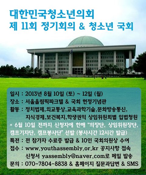 대한민국청소년의회 홈페이지 www.youthassembly.or.kr