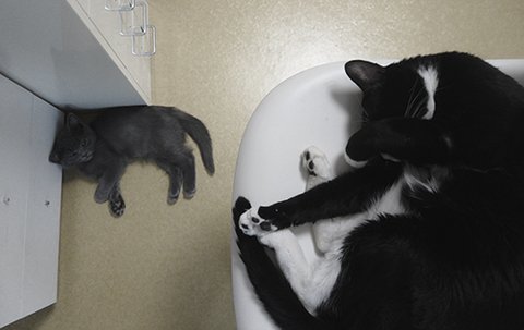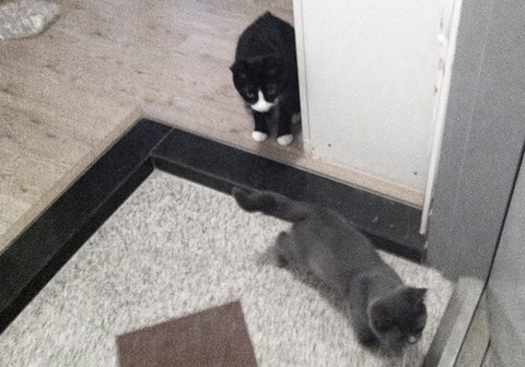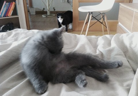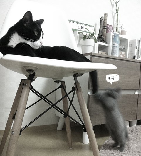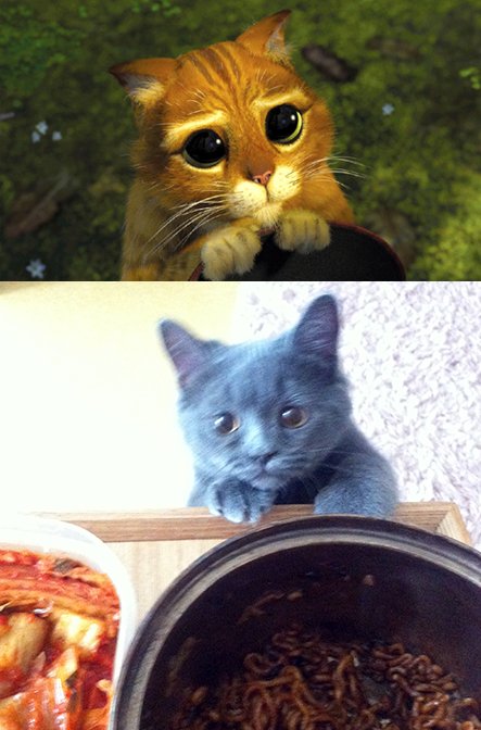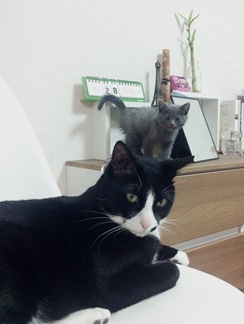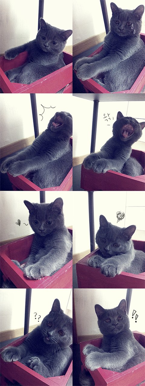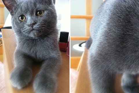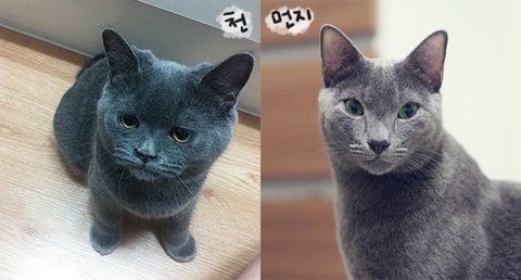 러시안블루랑 비슷한 코트를 입고 있어 헤깔리시는뎁 체형이 전혀 반대여요