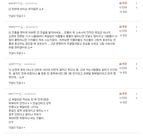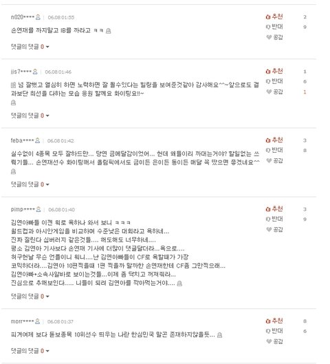간간히 보이는 김연아빠의 댓글은 추천이 반대보다 많음 ㅋㅋ