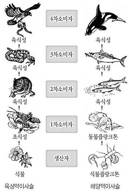 먹이사슬 : 살아 있는 유기체 간의 포식과 의존 관계의 질서