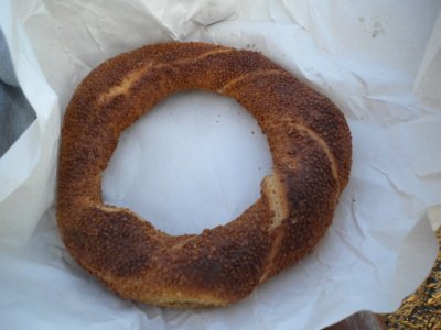 -터키 전통 빵. 아침 출근 시간엔 어느 나라든 바쁘다. 가볍게 지나다니며 먹을수 있는 빵이라 거리 곳곳에 많이들 판다. 주로 나이 많은 할아버지가 판매한다. 가격도 저렴하다. 700~1000원 정도? 크기는 큰데