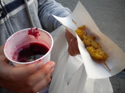 -오른손엔 100% 석류쥬스, 왼손엔 홍합튀김, 봉지에는 쌀로만든건데 죽도 아닌것이 이상하게 생겨서 산 정체모를 음식. 석류쥬스 홍합튀김은 정~말 맛있었는데 저 쌀로만든건....버렸....-