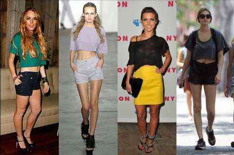 하이웨스트바지와 크롭탑.