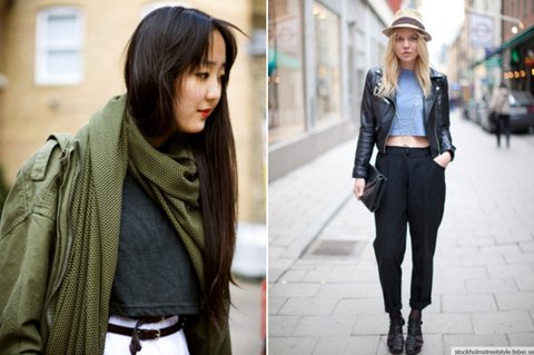 밑위가 짧은 바지와 크롭탑을 매치한다면., 살짝 부담시러운감도 있어요!!
