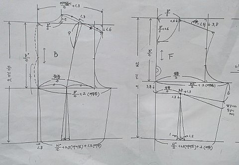 소매가 기모이기때문에 뒷판 소매와 앞판소매를 연결해서 그려주셔야되요!