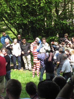 치즈롤링경기중! 팬더탈쓰고 가시는분.......... 이분들 정상에서부터 달려오시는데