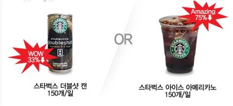 편의점 캔커피와 매장 아이스 아메리카노 둘 중 하나가 복불복으로 추첨되네요