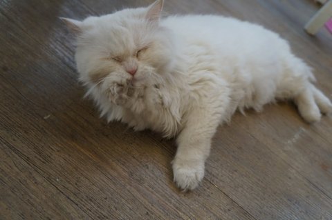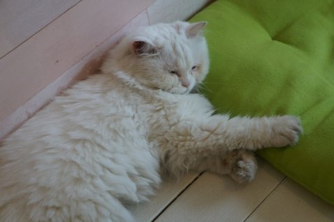 기지개 펴다가 발톱 걸려놓고 심통난 표정의 룰루입니다.