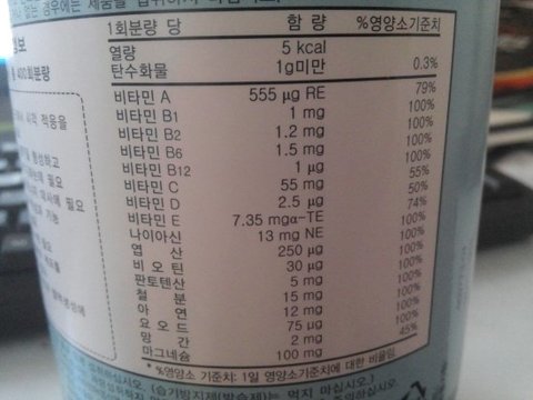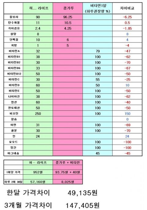 거의 모든 부분에서 1개에 40원짜리 비타민보다도 .. 훨씬 적네요.. -_-;;