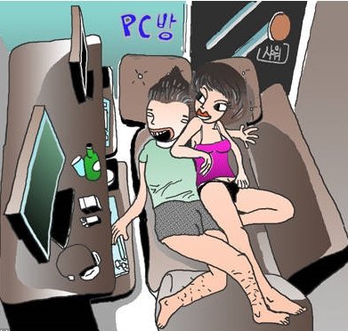 커플석 찐한 스킨십.....딴데가서 데이트를 하던가 왜 피시방에 와서~~;;;닝기미;;;;