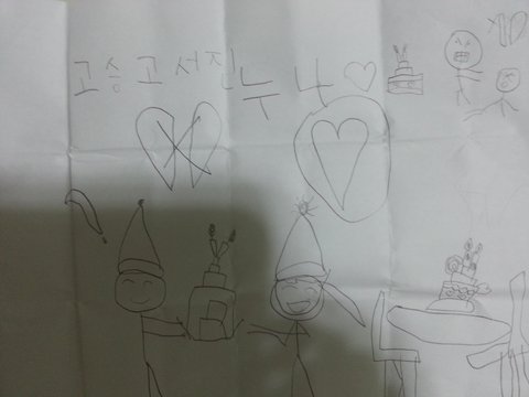 참고로 이번 여행중 자갈치시장이서 찍은 아들사진과 아들이 그린 그림 첨부합니다(졸라맨같은그림은 아들이 아직 한글을 몰라 그림으로 누나랑 싸우지말고 사이좋게 지내자는 내용의 그림입니다 ㅋ)