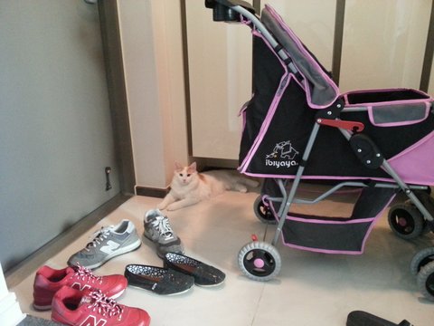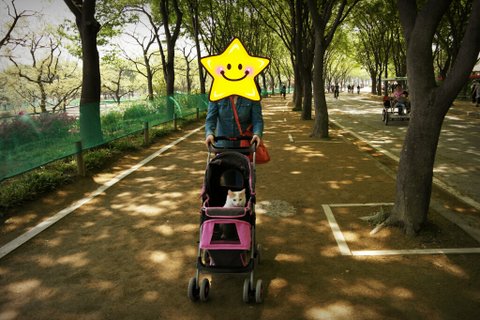이젠 유모차 위에 폴짝 올라타서 얼른 나가자며 졸라요 ㅎㅎ