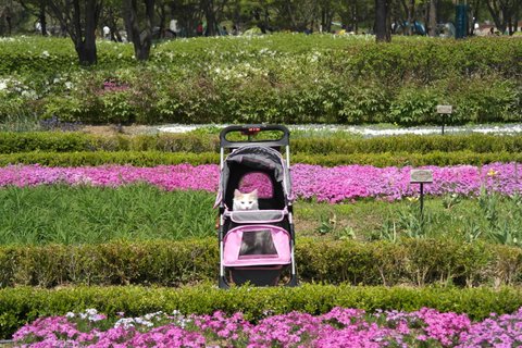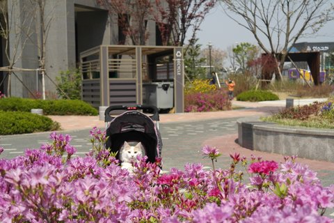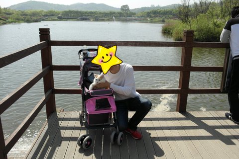 공원 산책을 시키기 위해 구입한 유모차예요.