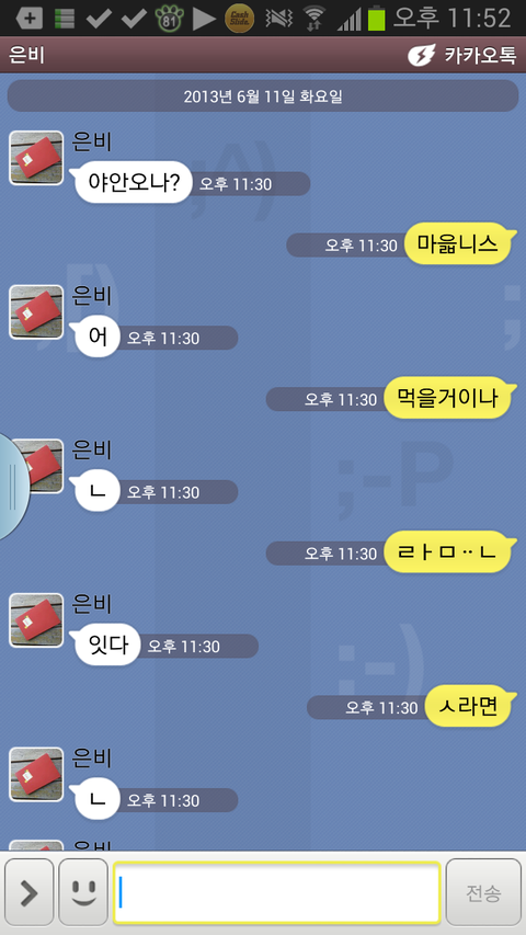 단답이라도 늦게온다고 걱정해주는 누나야 고마워