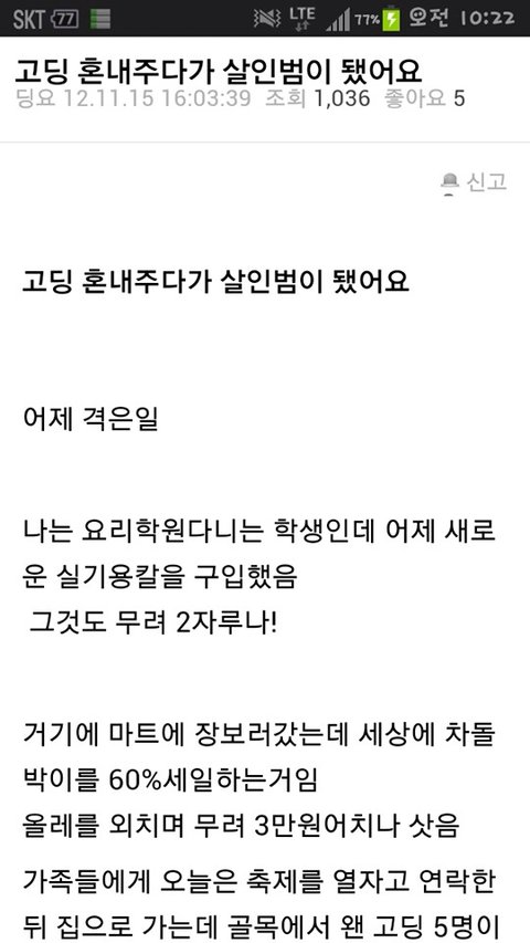 [펌펌]고딩 혼내주려다 살인범됐어요 txt