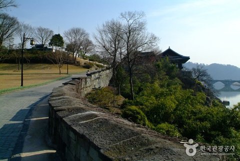 남강을 굽어보며 이어지는 둘레 1.7km 성곽에는 촉석루, 북장대, 서장대, 공북문 등이