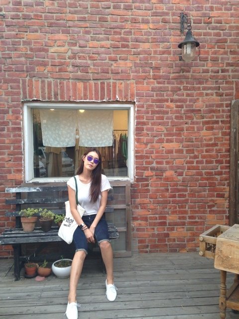 하얀 면티셔츠에 리폼한 청바지만 딱 입었는데