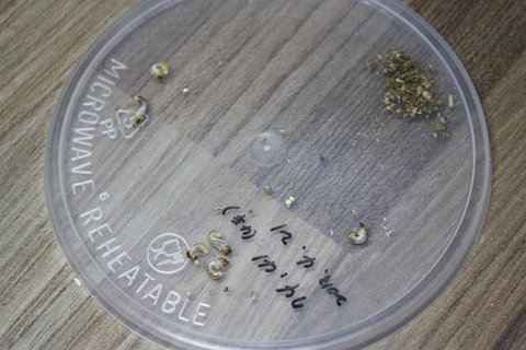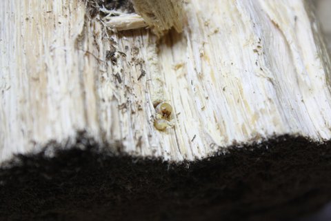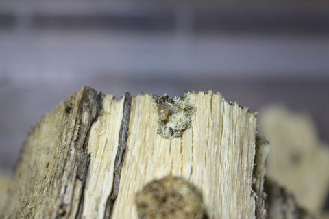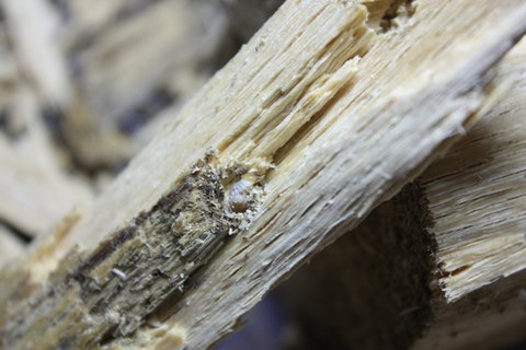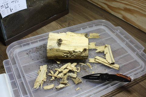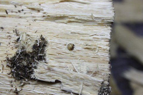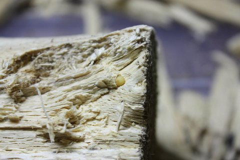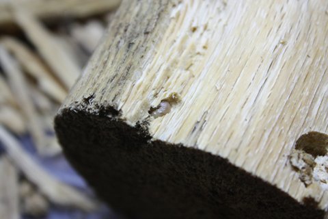 위 사진은 나무속에 낳은 알과 유충을 채집하는 과정입니다.