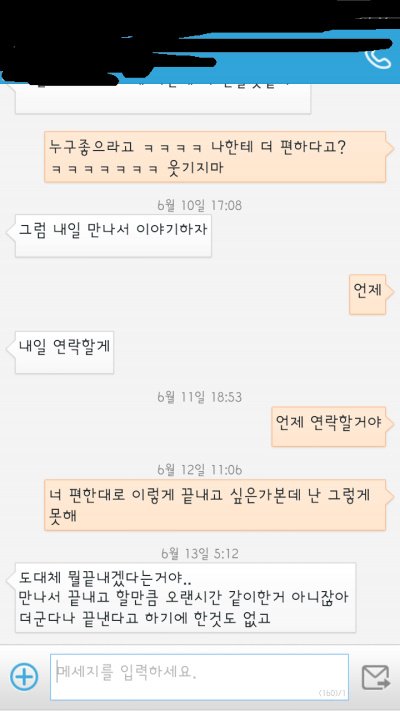 만나서 끝내고 할만큼 오랜시간 같이한게 아니라고 함