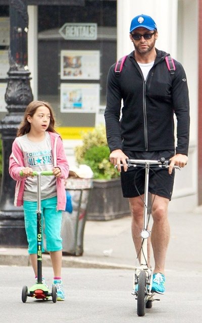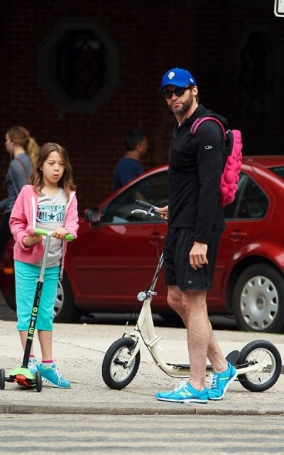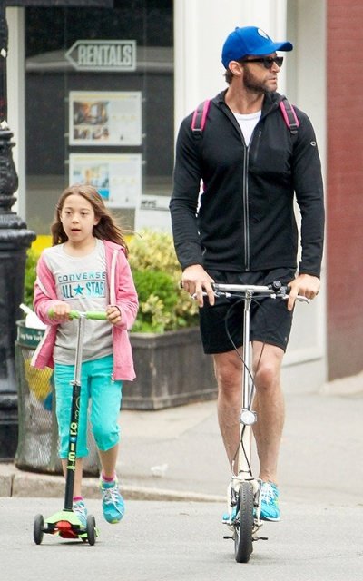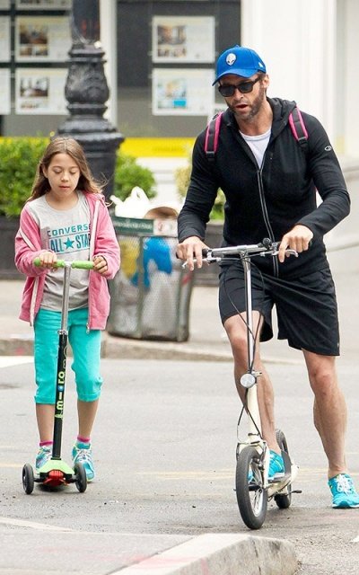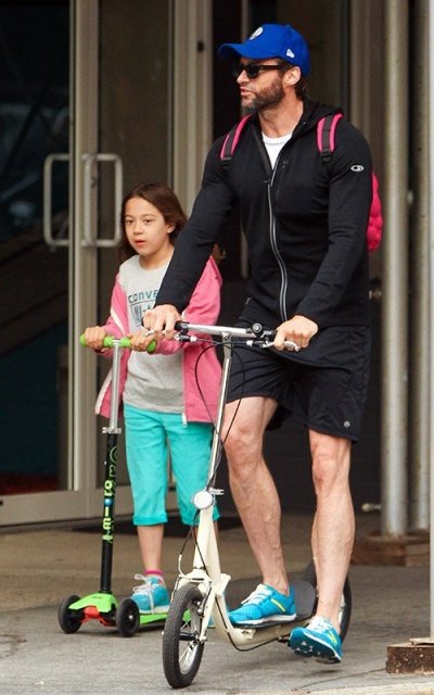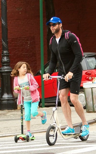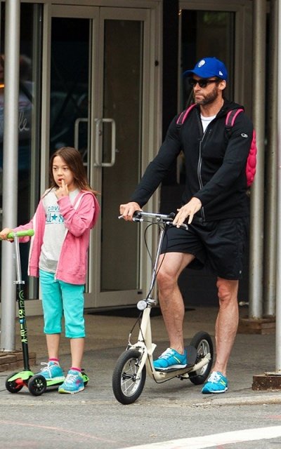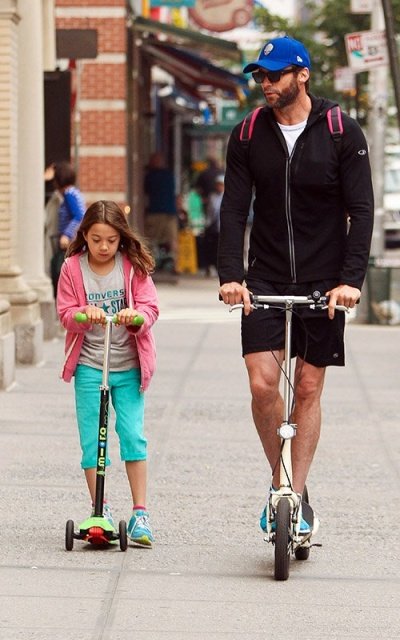 딸 에바랑 나란히 킥보드 타고 딸 학교에 데려다 주고 있는 휴잭맨ㅋㅋㅋ