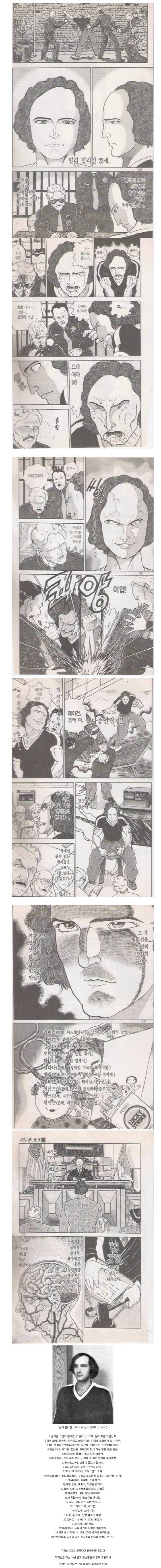 1977년 10월 27일 미국의 오하이오주에서 한 남자가 체포되었다. 빌리 밀리건 22세. 범죄의 천국 미국에선 흔히 있는 부녀자 폭행이었다 그러나 조사가 진행되면서 놀라운 사실이 밝혀졌다. "훌쩍…. 훌쩍…." "난…몰라요, 몰…라." "또 시작이군." "흑…." "이번엔 누구야?!" "울보 데니…. 14살…. 겁쟁이 소년…." "으애애앵!" [멈칫] [흠칫] [씨익] "이건…." "레이건이다." "조심해, 이 녀석은 가라테를 한다구." [콰앙] "이얍!" "레이건, 꼼짝 마." -다중인격자!! "어디서 저런 힘이…." 한 인간의 내부에… 여러 개의 영혼이 있는…. 전문가의 실험에서도 연기와는 전혀 차원이 다른 밀리건의 변화에…. 학계의 권위 있는 학자들은 모두 할 말을 잃었다. 그 후 밀리건을 면밀히 조사한 결과…. 학자들은 성별과 연령이 다른 24명의 인격과 만났다. 레이건(23세. 아드레날린을 조낙하는 가라테의 달인.) 아서(22세. 화학자, 무신론자.) 알렌(18세. 애연가, 달변가.) 토마(16세. 도망의 달인, 화가.) 테니(14세. 금발의 겁쟁이.) 필립(20세. 브루쿨린 사투리를 쓰는 폭력배.) 윌터(22세. 방향감각이 뛰어난 사냥꾼.) 에이프릴(19세. 보스턴 출신의 매춘부.) 마크(16세. 자주성 없는 근로소년.) 제이슨(13세. 히스테릭, 기억상실.) 이상의 조사 보고를 오하이오 주의 재판소가 받아들여…. 무죄!!라는 미합중국 개국 이래 전무한 판결이 내려졌다. 전세계의 심리학, 생리학, 해부학은 물론 심령학을 흥분시킨 빌리 밀리건 사건…. 그는 지금도 제1급 연구 대상이다. 빌리 밀리건 Billy Miligan (1955. 2. 14 ~) 1.윌리엄 스탠리 밀리건 (''빌리'') : 26세, 원래 혹은 핵심인격. 2.아서:22세, 영국인, 지적이고 합리적이며 감정을 드러내지 않는 성격. 3.레이건 바다스코비니치:23세, 증오를 간직한 자, 유고슬라비아인. 4.앨런:18세, 사기꾼, 협잡꾼, 외부인과 협상 하는 일을 주로 맡음. 5.타미:16세, 탈출 기술이 있는 예술가. 6.대니:14세, 겁이 많은 성격, 사람들 중 특히 남자를 무서워함. 7.데이비드:8세, 고통과 공감의 관리자. 8.크리스틴:3세, 소위 ''구석의 아이''. 9.크리스토퍼:13세, 크리스틴의 오빠. 10.에이들라나:19세, 레즈비언, 수줍고 외로움을 잘 타는 내성적인 성격. 11.필립:20세, 폭력배, 뉴욕 출신. 12.케빈:20세, 계획가, 하찮은 범죄자. 13.월터:22세, 오스트레일리아인, 사냥꾼. 14.에이프릴:19세, 못된 여자아이. 15.새뮤얼:18세, 방황하는 유대인. 16.마크:16세, 단순 노동 책임자. 17.스티브:21세, 사기꾼. 18.리:20세, 코미디언. 19.제이슨:13세, 압력 밸브의 역할. 20.로버트 (''바비'') : 17세, 몽상가. 21.숀:4세, 귀머거리. 22.마틴:19세, 뉴욕 출신의 천박한 자랑쟁이. 23.티모시 (''티미'') : 15세, 자기 세계에 빠져있음. 24.선생:26세, 23개의 다른 자아들을 하나로 융합시킨 인격 무죄 받았다고 운좋다고 판단하면 안된다 무죄 받은대신 10년 넘게 정신병원에 강제 수용되서 수 많은 정신학 연구의 대상이 되었다고 한다. 점이 왜이렇게 많아 난 무슨 내가 소설쓰는 줄 알았음