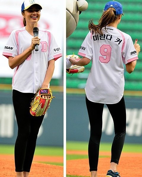 어제 두산이랑 스크 경기 때 시구하러 온 미란다 커 ㅠㅠㅠ