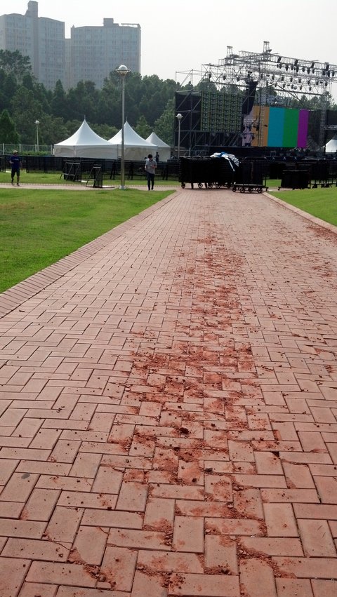 비스트가 마루공원에서 뭔가를 한다는 소리는 많이 들려왔었는데요 보러간건 처음이었습니다 가봤더니 거기에있는 공연장이 바뀌어있더군요 근데 문제는 가보니 거기 깔려있는 보도블럭이 짐이 지나간 길을 따라서 쭉 깨져있었습니다