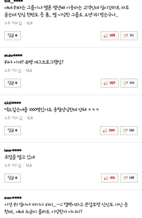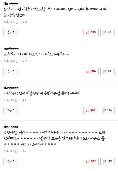 어찌됬든 소속사빨 1위 가수된거 축하한다 엑소~앞으로도안티많이많이얻기를^^