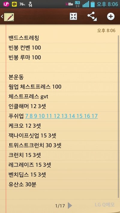 자.. 다음사진은 .. 내가 두시간반 정도 운동을 하는 내용이야..