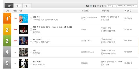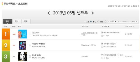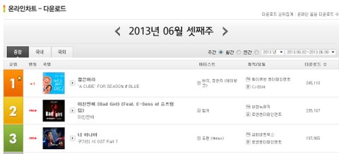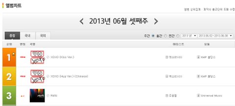 가온차트 순위들인데 엑소가 3위안에 든게 앨범차트밖에 없넼ㅋㅋㅋ