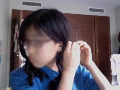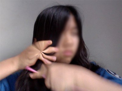 하나를 똥머리처럼 빙글빙글 돌려서 고무줄로 고정시킴