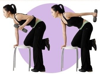 '덤벨 킥백'이라는 운동이다.  삼두근의 운동중 하나인데 많은 다이어트 광고시 저 운동을 소개한다. 가벼운 덤벨이나 덤벨이 없을시에 패트병에 물을 넣어서 해도 좋다고 이야기를 하며 팔뚝살을 빼주고 쳐진 살들을 없애 준다고 한다.