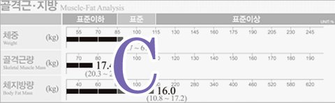 체중계를 멀리하고 차라리 인바디체크기나 줄자를 가까이 하여 체형변화에 더 신경을 쓰도록. 위에서 나온 것처럼 근육량은 적고 체지방량이 높은 C자형 인바디가 아니라 반대로 근육량은 평균 이상으로 체지방은 평균이하로 줄여 D자형 인바디를 만들도록 하자!
