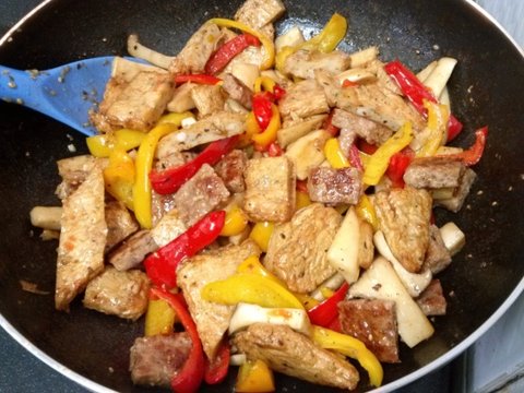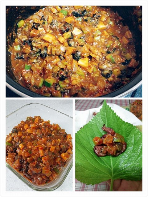 고추장 된장 올리고당 참기름 마늘 고추 등등 섞어섞어서 달달달 볶아줍니다.