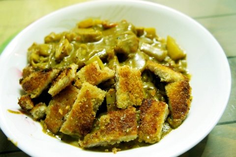 아래에 밥 깔고 카레 덮고 돈카츠 올리면 정말 맛있습니다