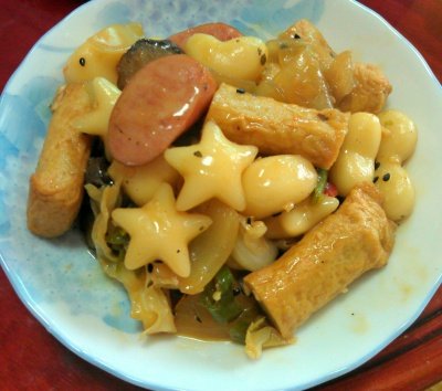 떡갈비랑 완전맛있는 오동통통한 어묵이랑 굴소스 넣고~