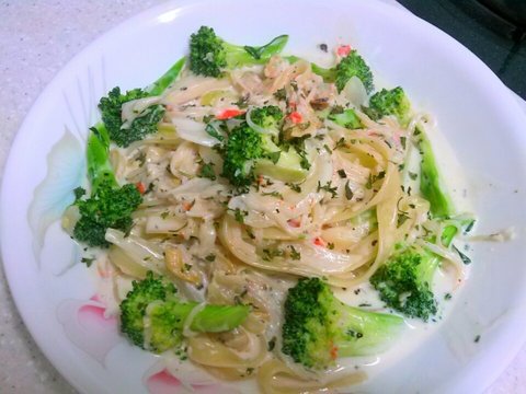 브로콜리를 너무 크게 썰어서 파릇파릇해보이는 크림파스타가 되어버렸음...