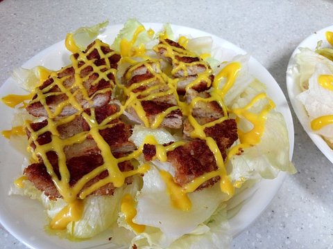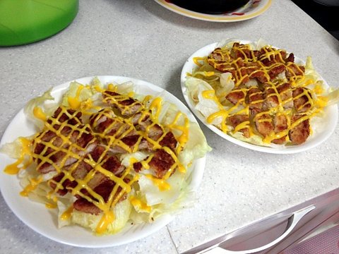돈까스 튀겨서... 샐러드돈까스 만들었음요... 돈까스엔 머스타드지!!!
