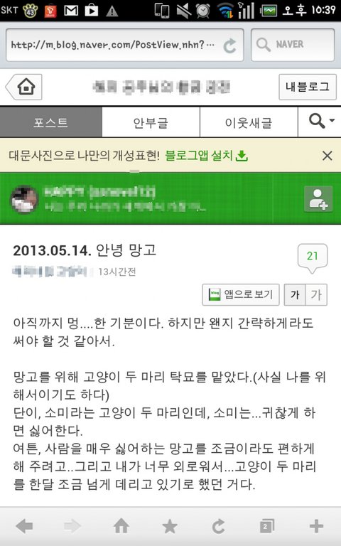핸드폰끄고 잠수. 여차저차 데려온 고양이는 꼬리뼈가 만져질 정도로 말라있고