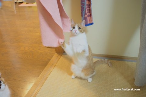 '어이쿠... 발톱에 수건이 걸렸네...'