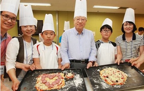 이날 직원 가족들과 피자를 함께 만들며 KT 가족들이 보여주는