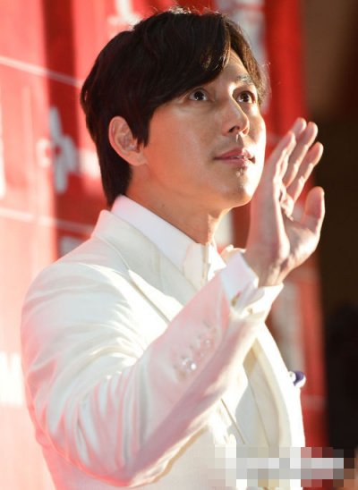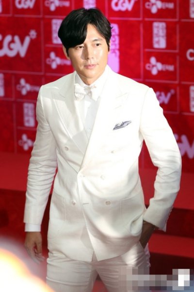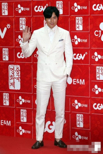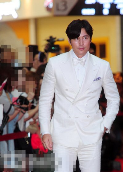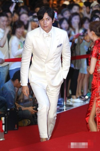 예전보다 살이 좀 붙어서 덩치가 더 커졌는데도 과감한 하얀 정장을 택한 정우성