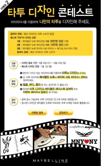 6월 23일 일요일까지 진행되는 메이블린 타투디자인 콘테스트는