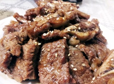 LA갈비 양념해서 구어먹기! 시판용 양념은 반만넣고 매실액이랑 참기름, 간장,다진마늘 더 넣어서