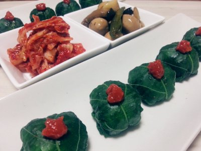 물기를 짜낸 데친 깻잎에 소금+참기름 간을 한
