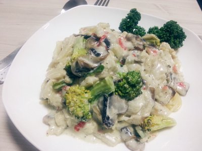 재료 먼저 볶고 크림넣어 소스만들어 소금+후추간.