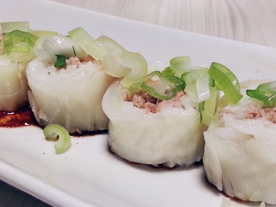 넓게 펼쳐 밥과 참치를 넣어 김밥처럼 말아서